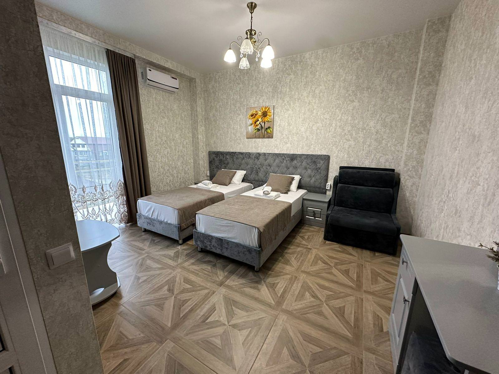 Колибри - новый современный отель на первой береговой линии, в шаговой доступности пляж, магазин продуктов, кафе. Международный аэропорт Сочи - в 51 км, железнодорожная станция Гагра - в 10 км. В отеле 40 комфортабельных номеров различных категорий со всеми удобствами. В каждом имеется холодильник, кондиционер, сейф, телевизор, набор посуды, полный комплект полотенец, зубные наборы и тапочки. Номера с собственным балконом. К услугам гостей бесплатный Wi-Fi, подогреваемый открытый бассейн и круглосуточная стойка регистрации.